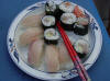 raw fish salad, chicken curry, lemon chicken, and for Mark and Mike a