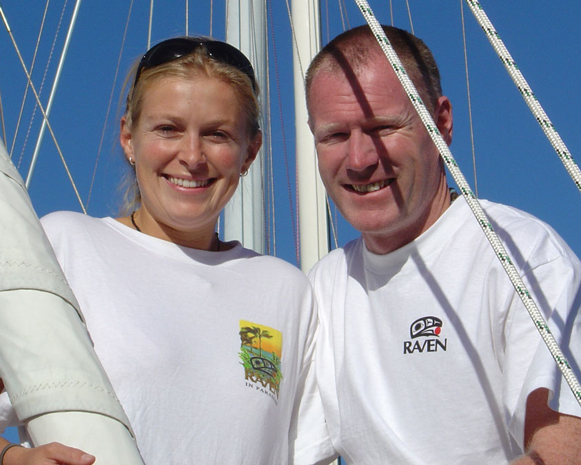 We highly recommend that the buyer of Raven retain our excellent professional crew, Captain Rod Bradley and First Mate Anouk Reijerts. They are very experienced South Pacific cruisers in their own sailboat, and can help the new owner with the first few months or years of cruising Raven in that fascinating region. They can also give the new owner a detailed "course" in Raven's characteristics and systems, how to use and maintain them. We cruised Raven by ourselves for three years, spending two winters in Mexico and then sailing across the South Pacific in 2002. By the time we reached New Zealand in November that year, we had visited the Marquesas, the Tuamotus, Tahiti, Bora Bora, Rarotonga, Niue, and Tonga, loving every minute. And there were still many more islands we wanted to cruise, but a family health crisis meant we had to curtail our cruising. And since we couldn't be aboard Raven full time, we decided to hire professional crew. We interviewed a dozen people for our crew positions and are extremely pleased with our luck in hiring Rod and Anouk in early 2004. Rod and Anouk have several years' experience cruising their own sailboat through many of the islands we want to visit: Fiji, Vanuatu, the Solomons, New Caledonia, etc. They sailed Raven to Fiji so that we could meet them there for a couple of cruises. We couldn't be happier with the way they handle Raven, maintain her systems and her looks, and the way they take care of us when we're aboard. Rod is a Kiwi and has thousands of sailing sea miles under his belt. He takes care of all the technical and mechanical side, and has solved several problems aboard Raven that had stumped Jan. Anouk is from Holland and is a full watch-standing partner to Rod on the bluewater passages, while taking care of the domestic side. Her cuisine is excellent, and we're especially happy with her sushi (lots of fresh fish available out there) and her Asian/Thai fusion style dishes. We look forward to her meals every time we're aboard!
